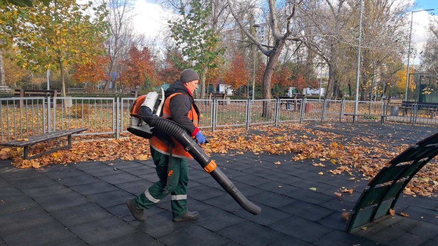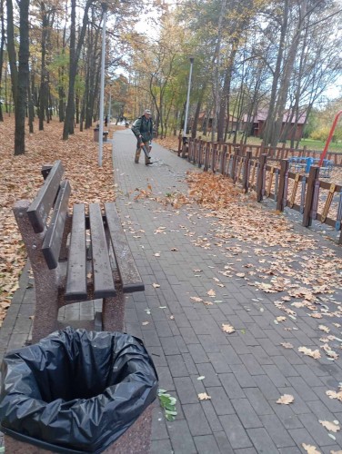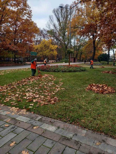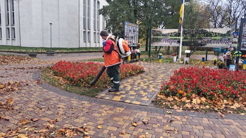 Фахівці КП УЗН вигрібають опале листя з паркових і зелених зон