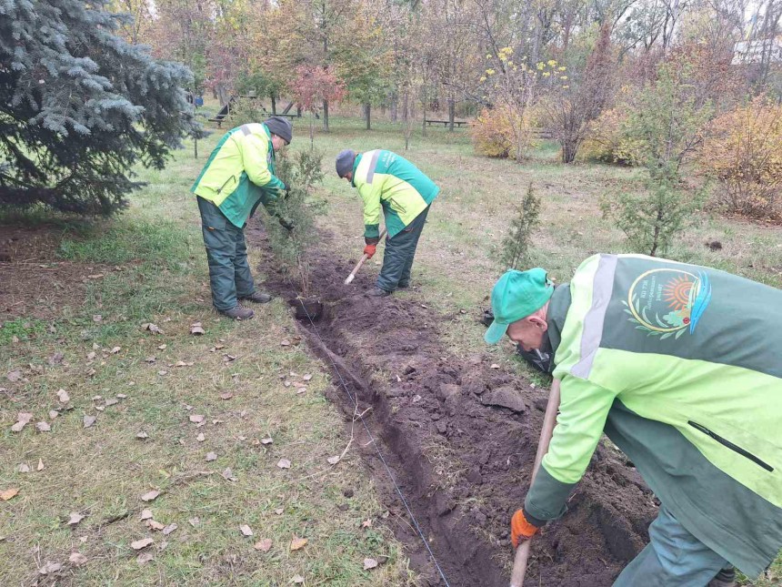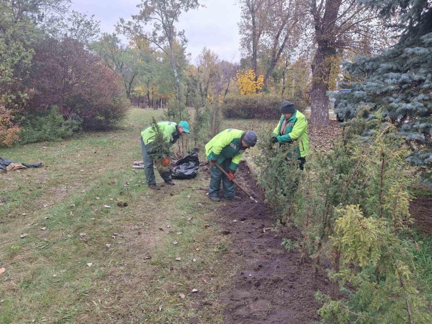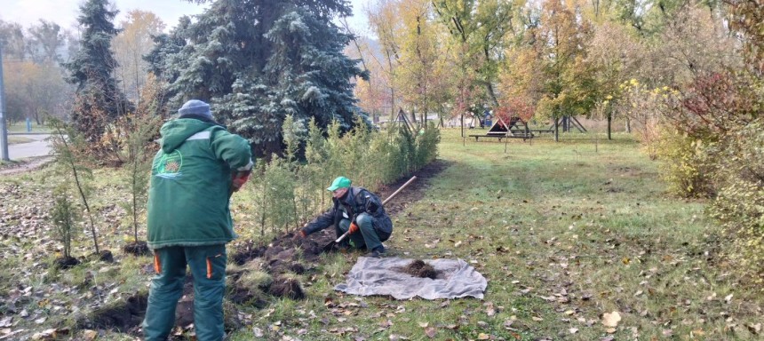 Фахівці КП УЗН висаджують кущі в парках і скверах