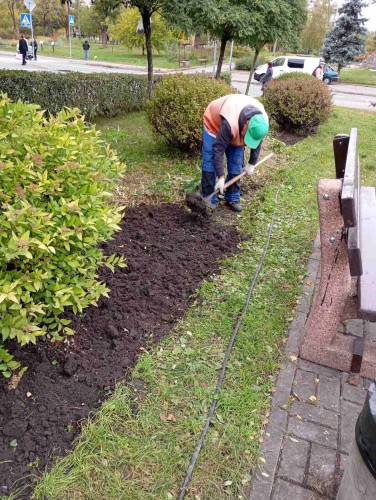 Фахівці КП УЗН здійснюють формувальну обрізку кущів та висаджують квіти