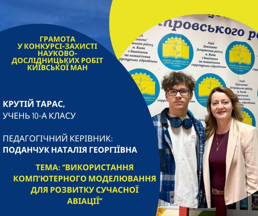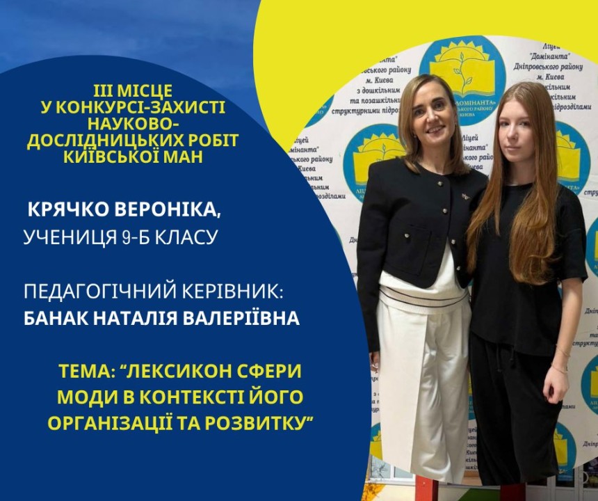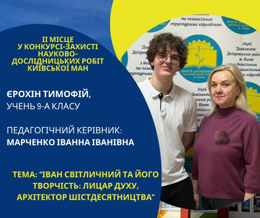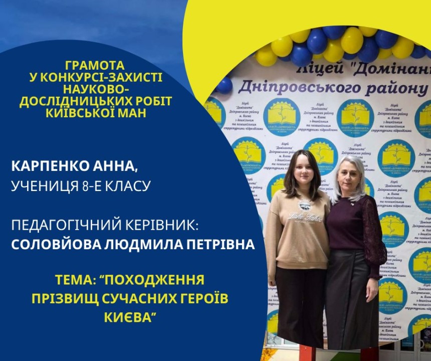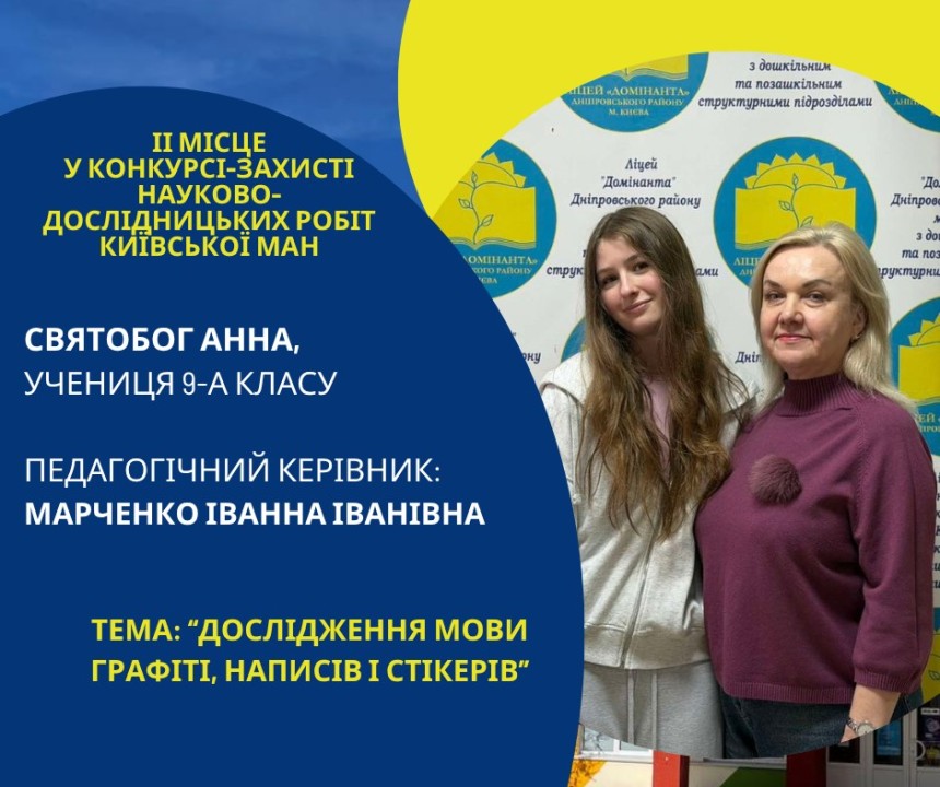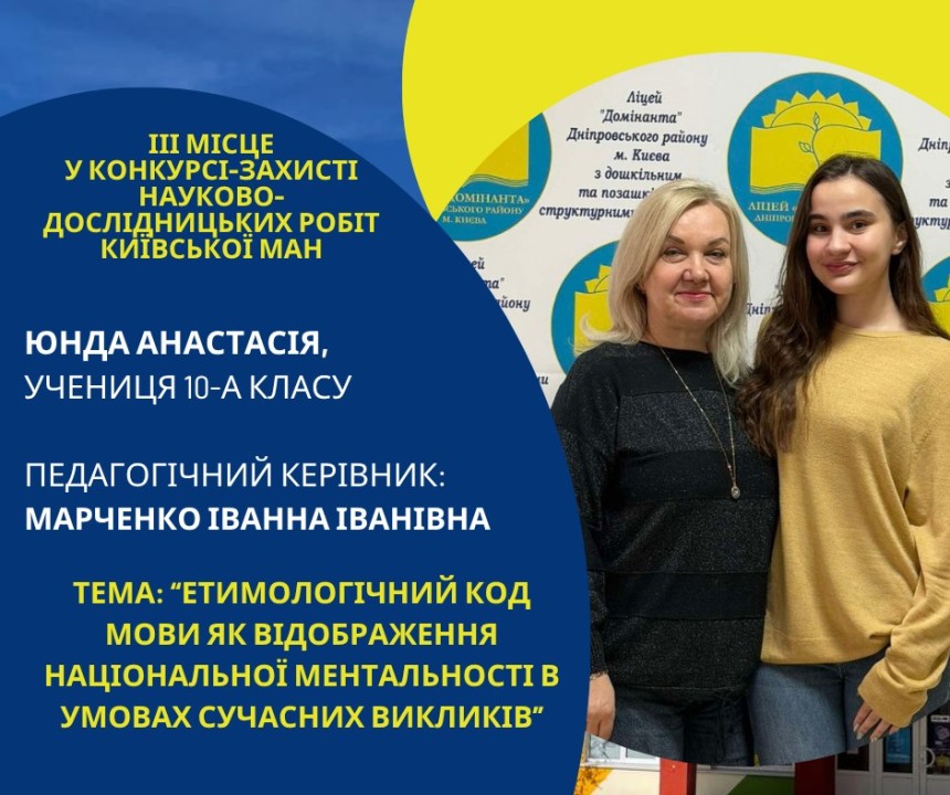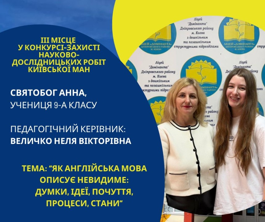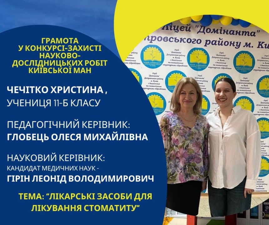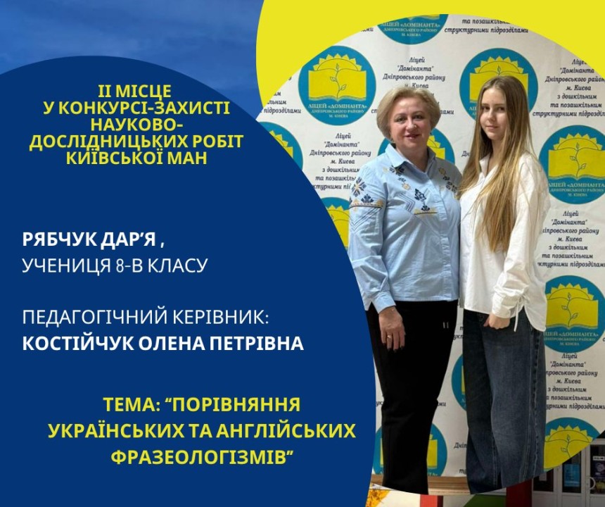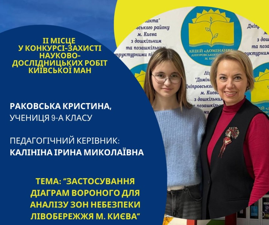 Першість Ліцею «Домінанта» за результатами ІІ етапу конкурсу-захисту науково-дослідницьких робіт Київської МАН