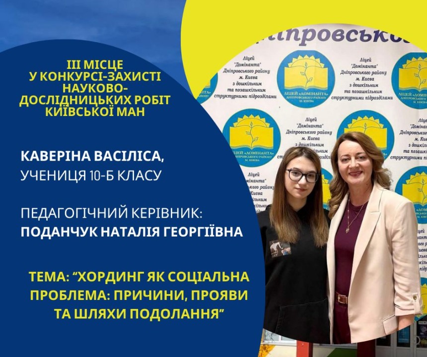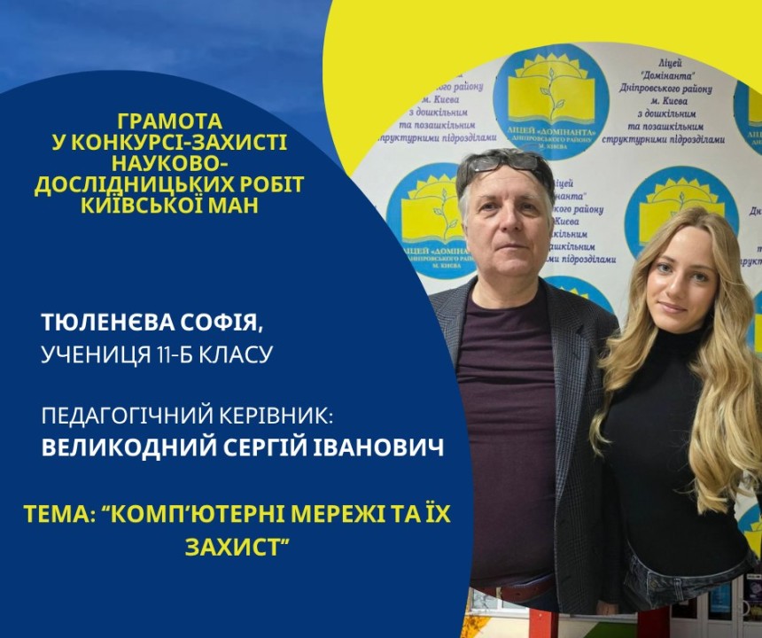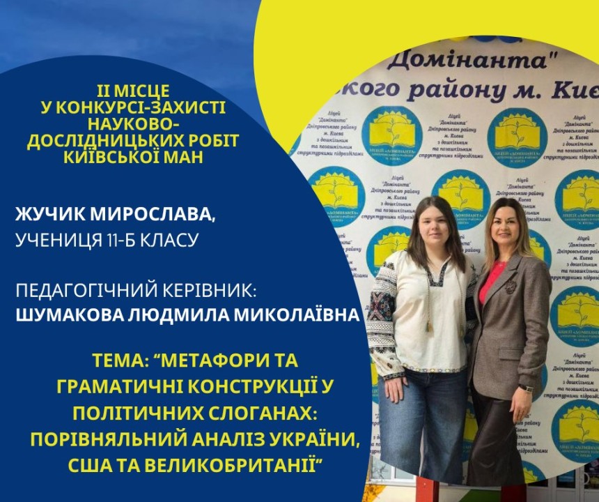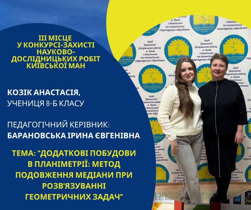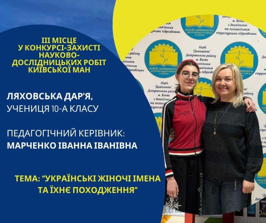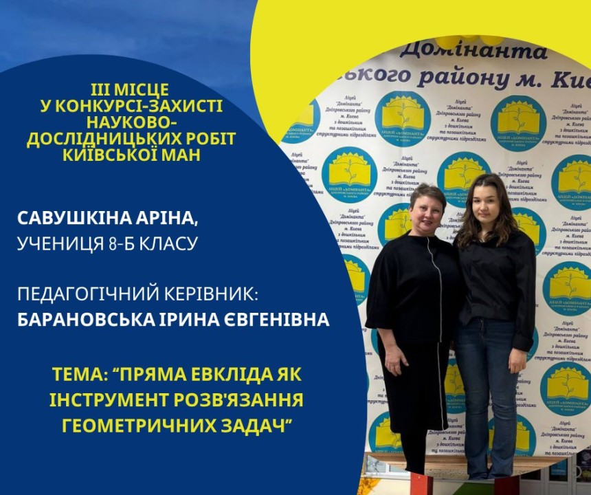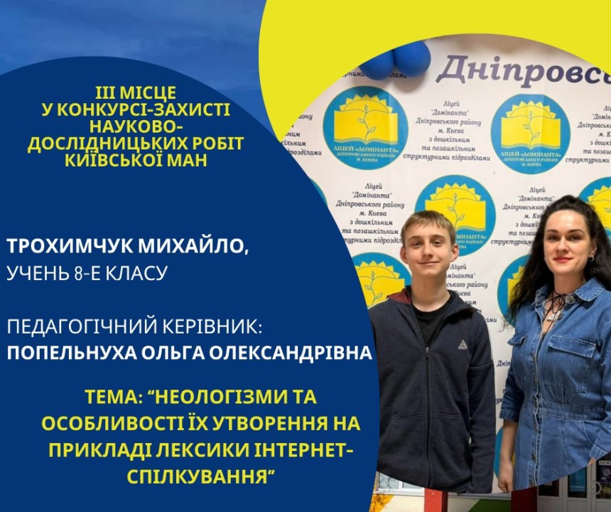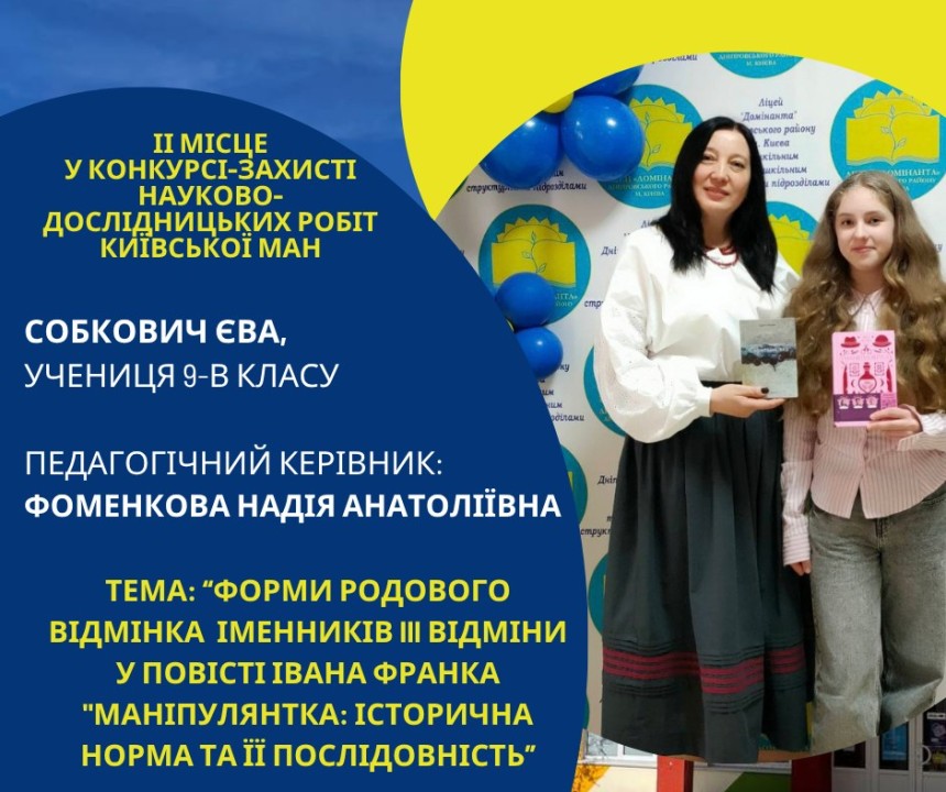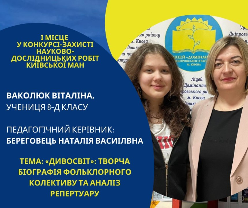 Першість Ліцею «Домінанта» за результатами ІІ етапу конкурсу-захисту науково-дослідницьких робіт Київської МАН