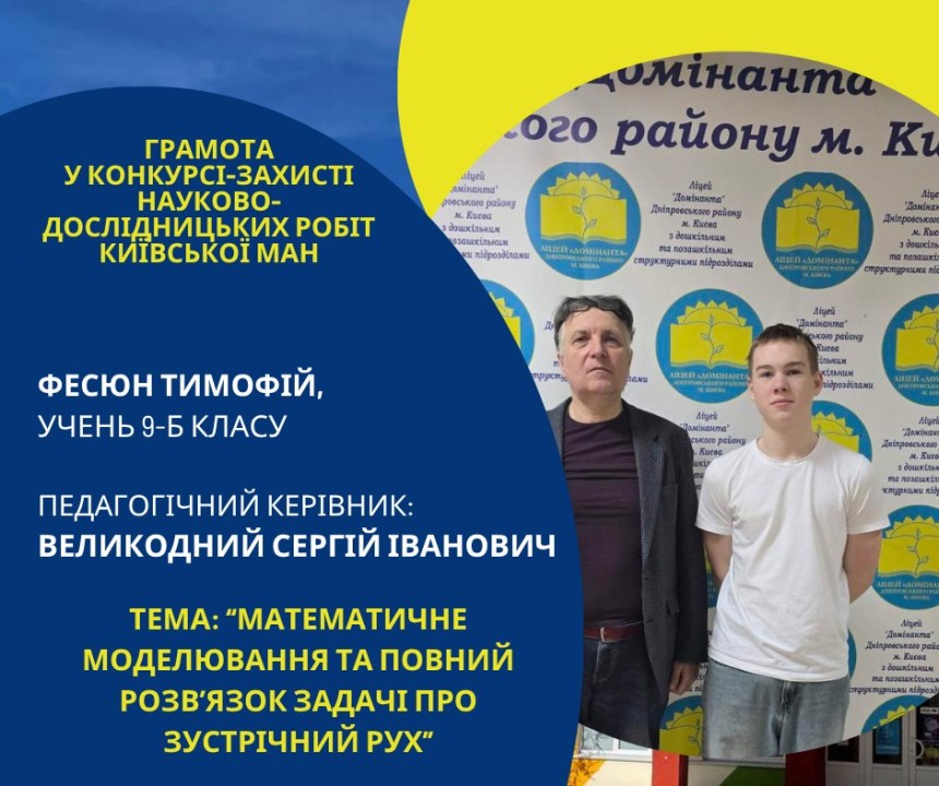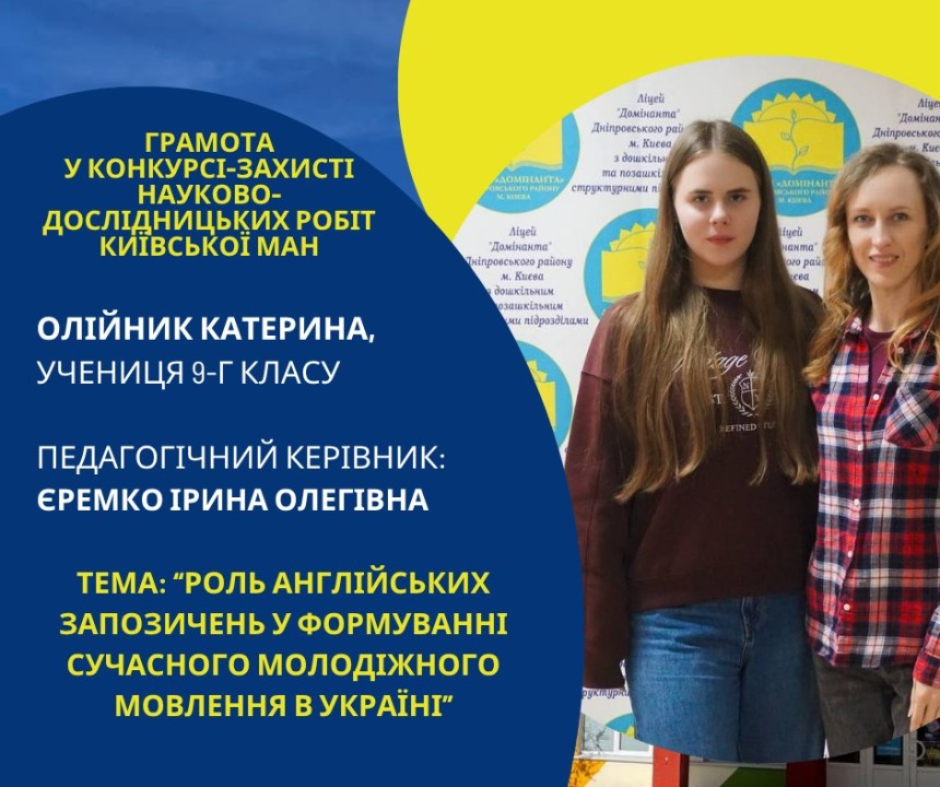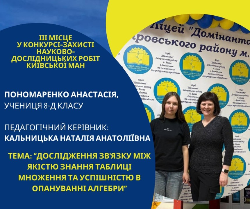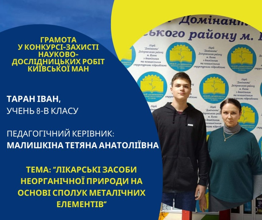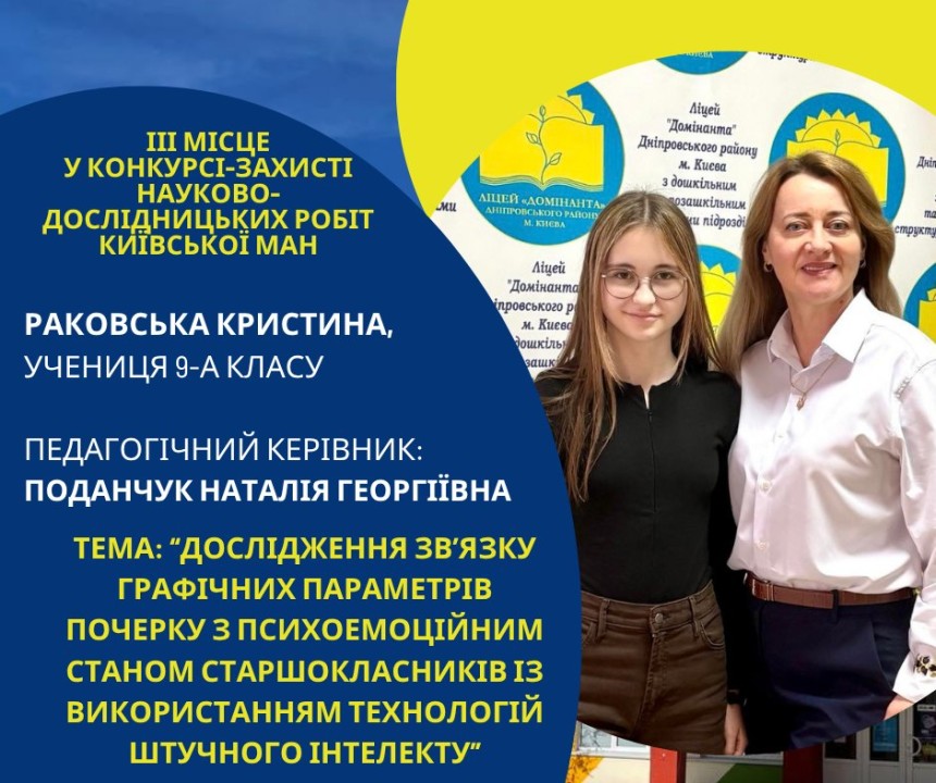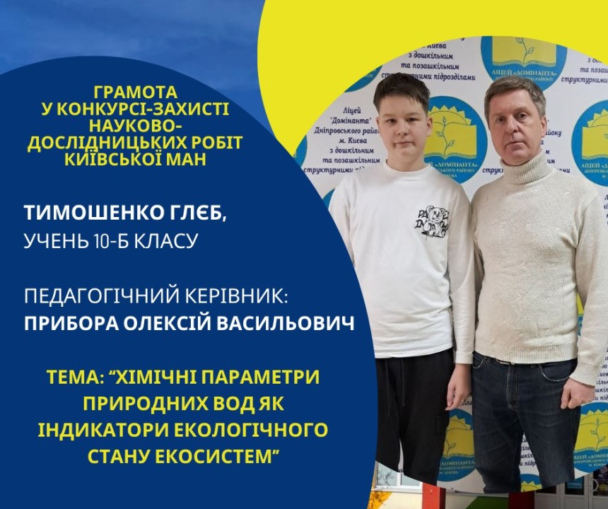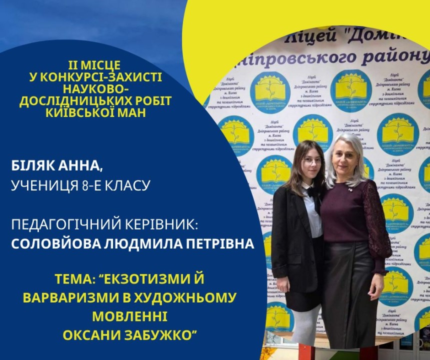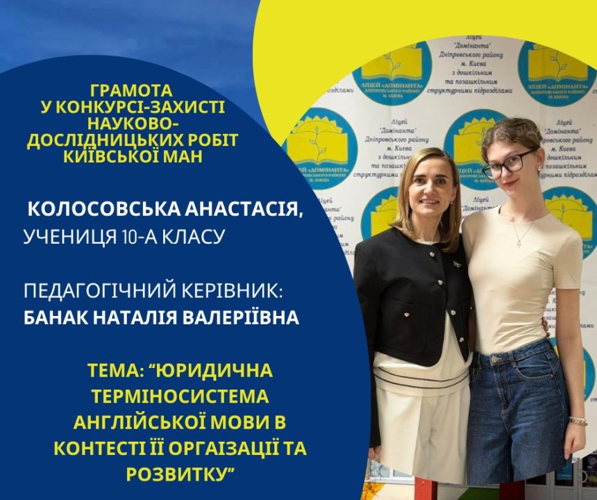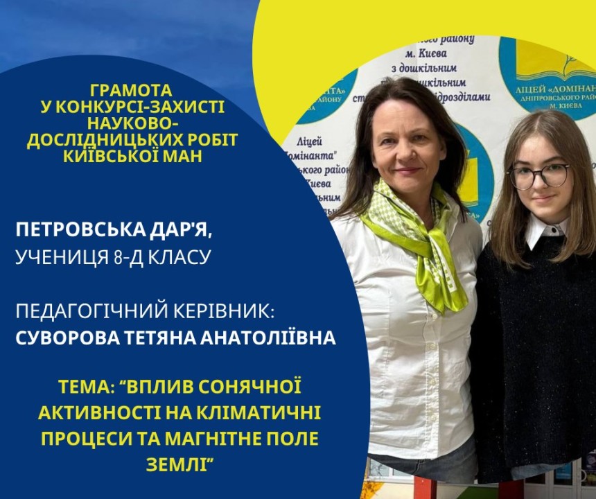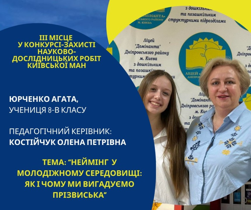 Першість Ліцею «Домінанта» за результатами ІІ етапу конкурсу-захисту науково-дослідницьких робіт Київської МАН
