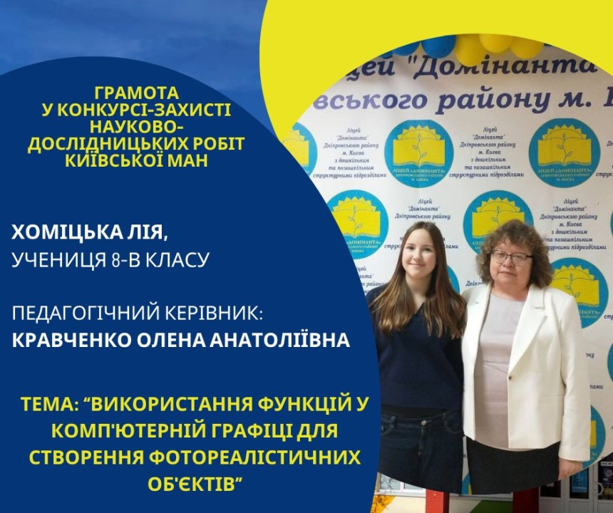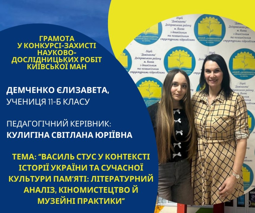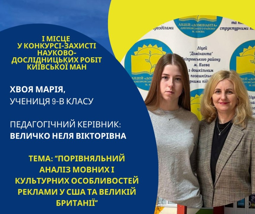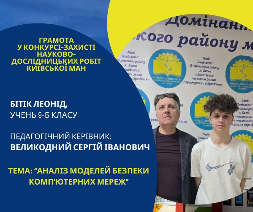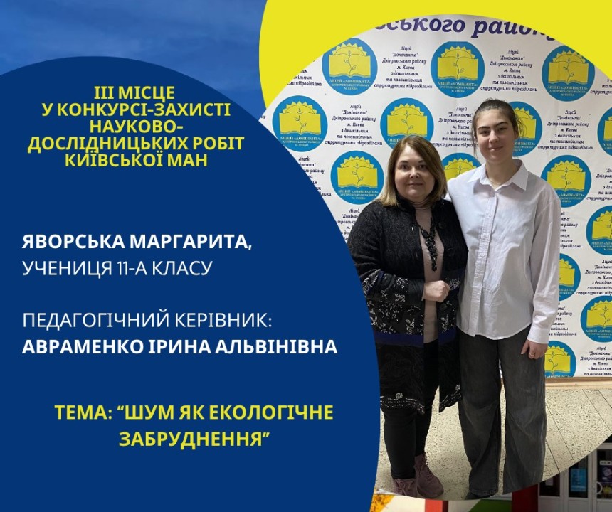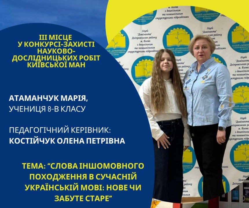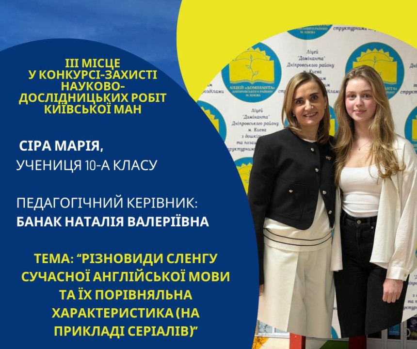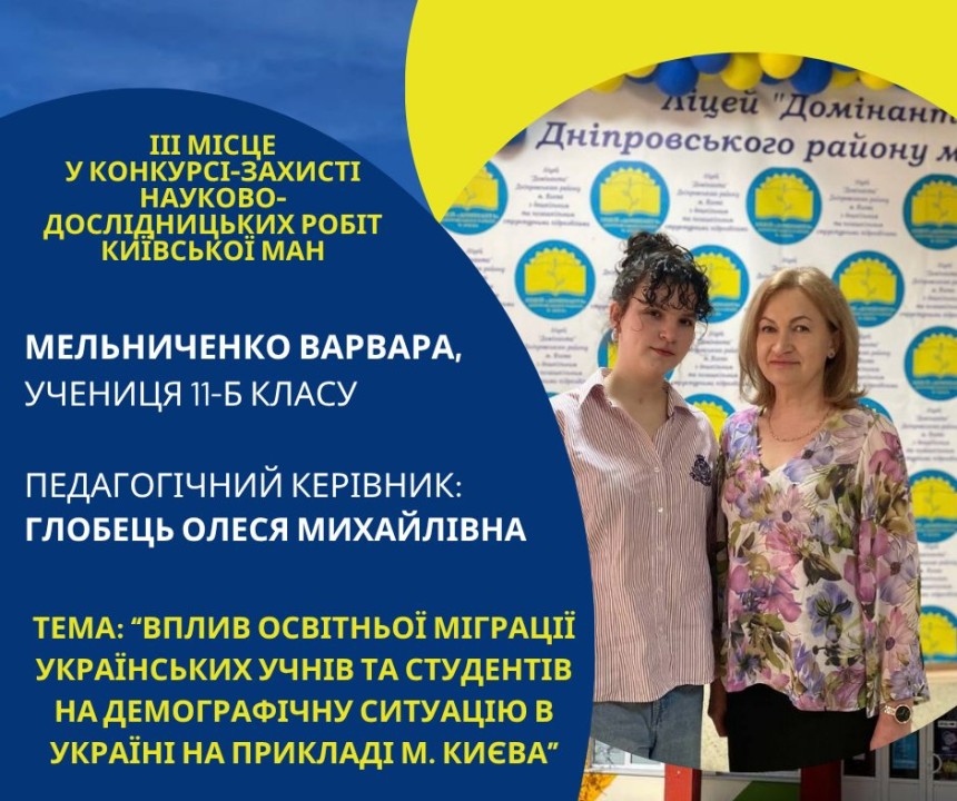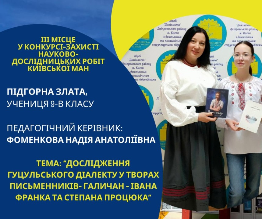 Першість Ліцею «Домінанта» за результатами ІІ етапу конкурсу-захисту науково-дослідницьких робіт Київської МАН