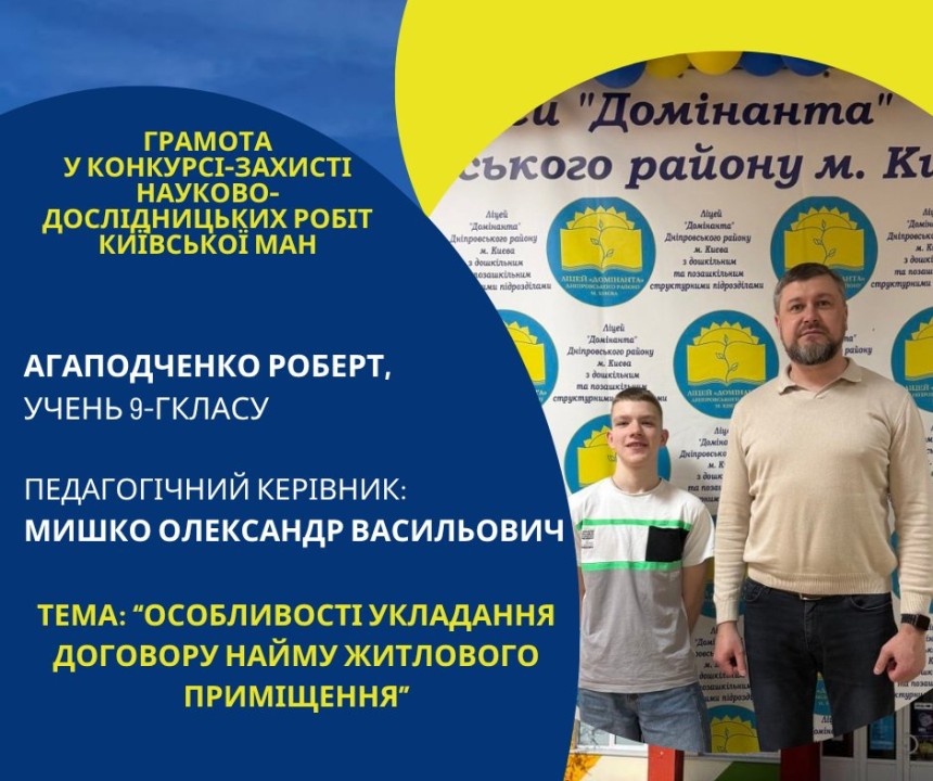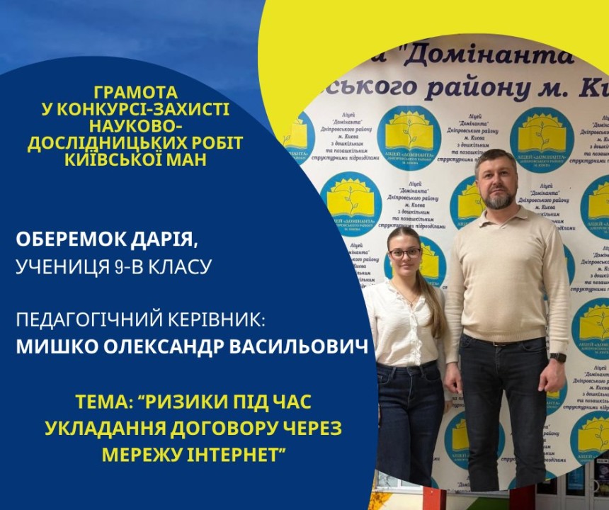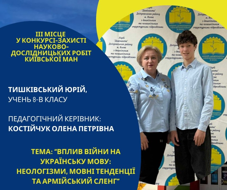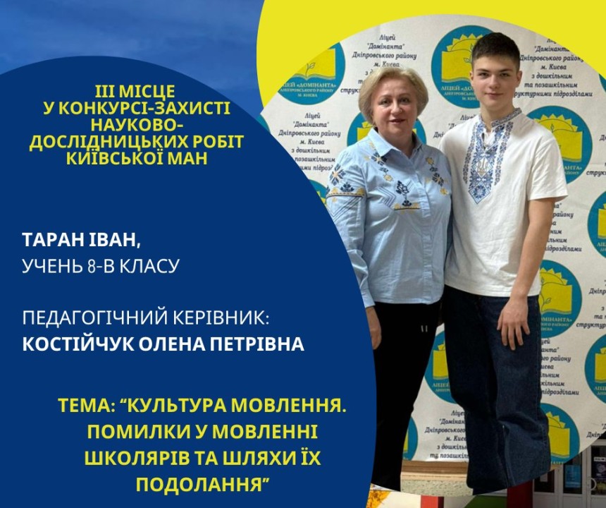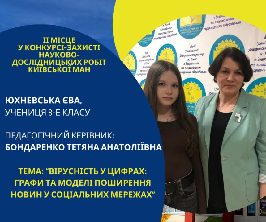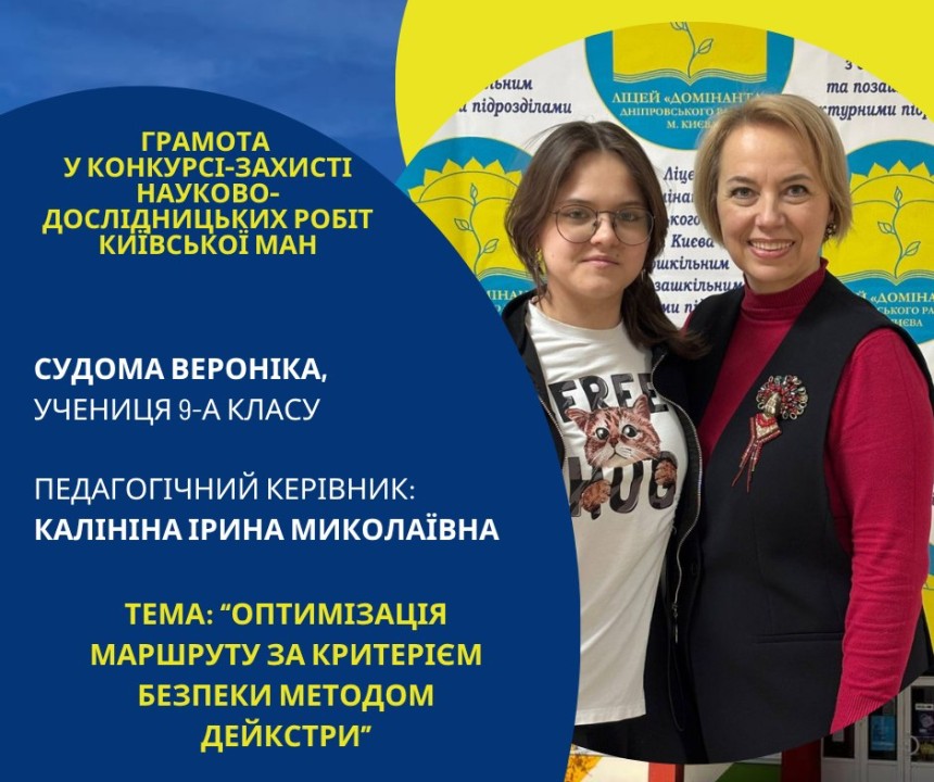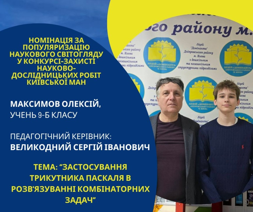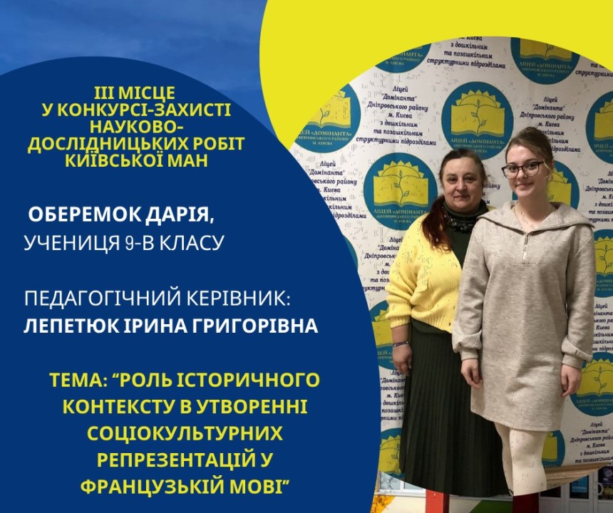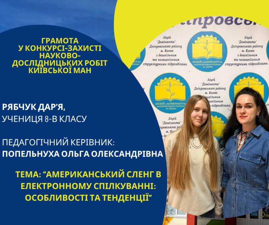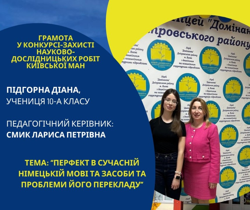 Першість Ліцею «Домінанта» за результатами ІІ етапу конкурсу-захисту науково-дослідницьких робіт Київської МАН