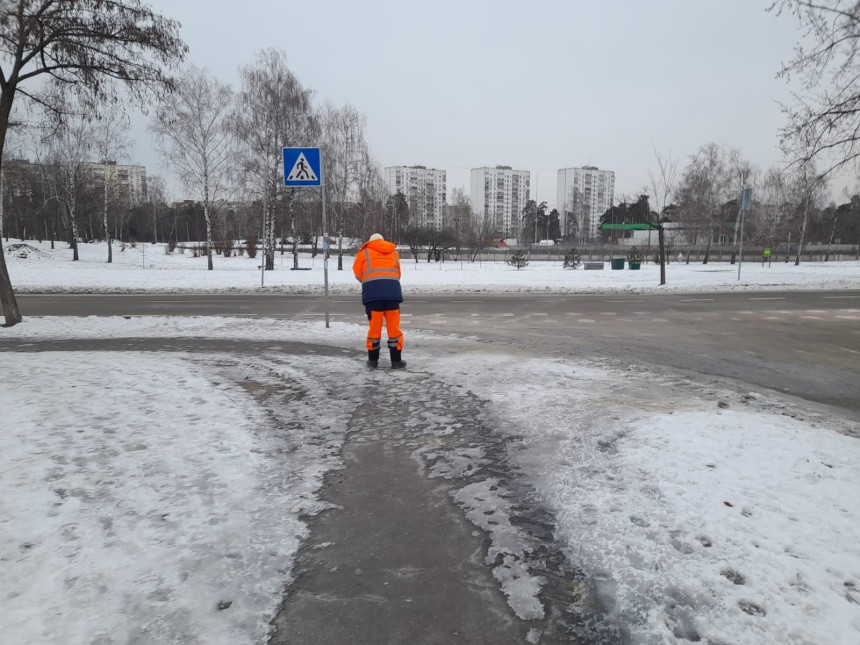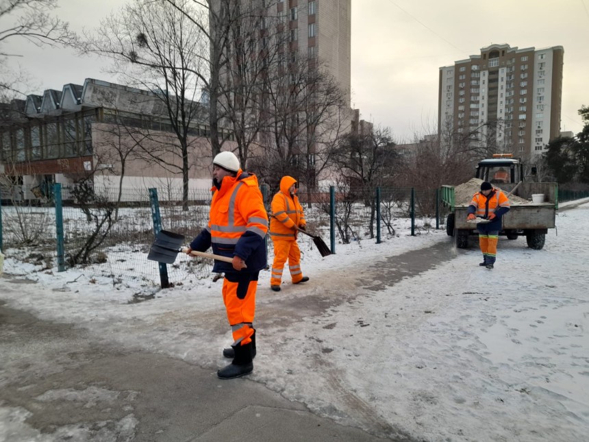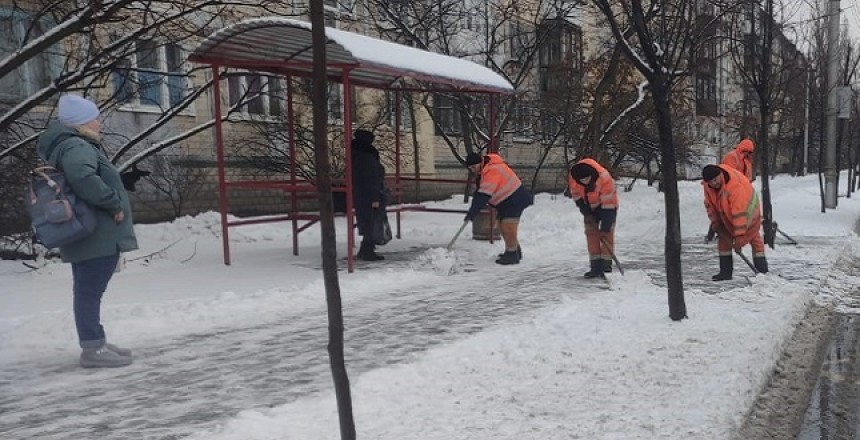 Працівники КП ШЕУ Дніпровського району розчищають дороги й тротуари від снігу