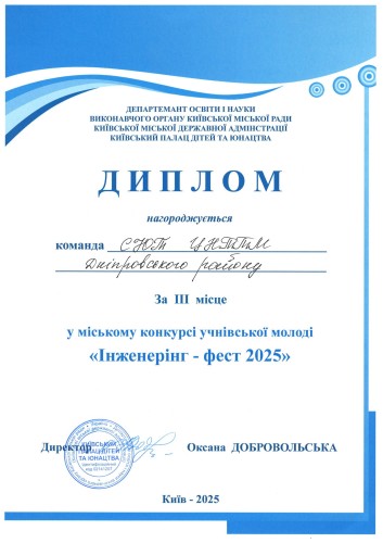 СЮТ-ЦНТТМ посіла ІІІ командне місце у міському конкурсі учнівської молоді "Інженерінг-Фест 2025"