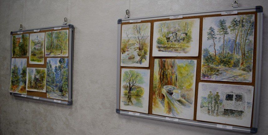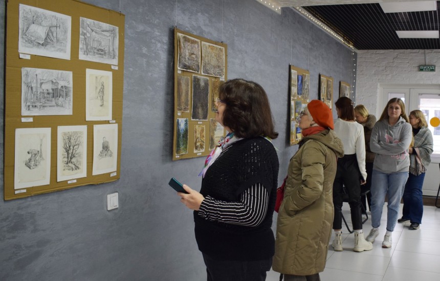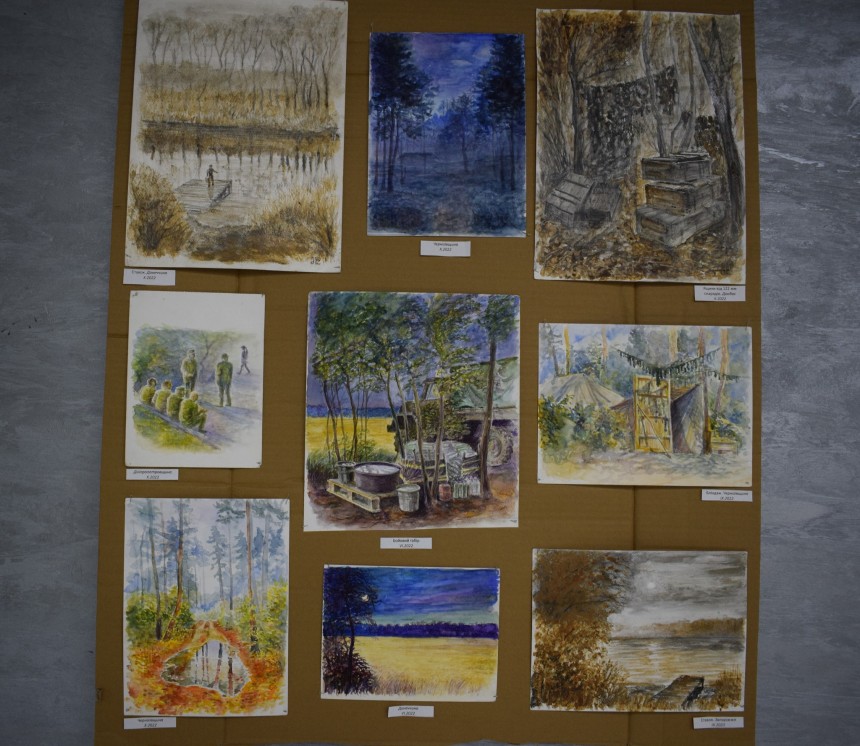 У бібліотеці ім. П. Тичини відкрилася виставка живопису Олега Базилевича «Фронтові замальовки»