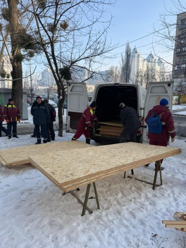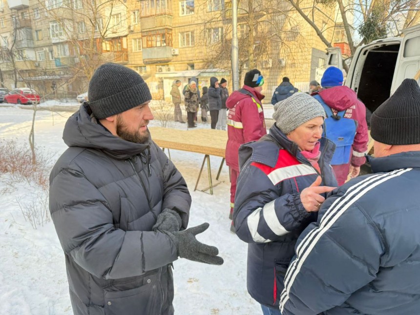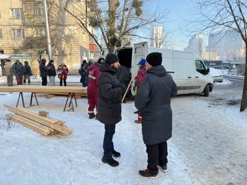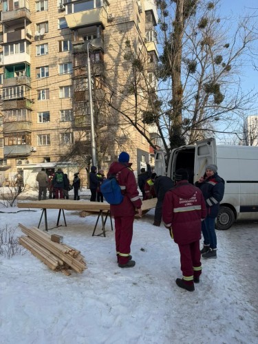 У будинках Дніпровського району тривають роботи з ліквідації наслідків масованої нічної атаки на Київ