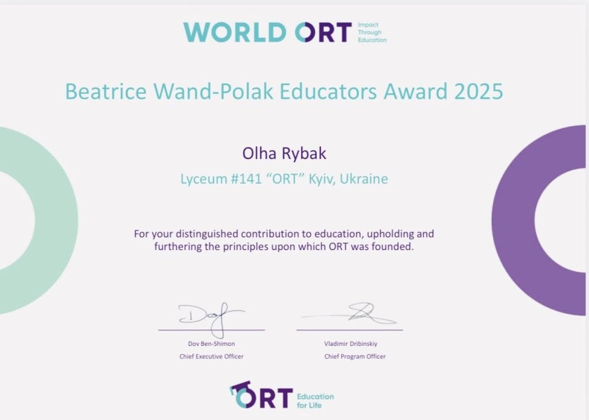 Учителька Ліцею №141 «ОРТ» отримала престижну міжнародну відзнаку