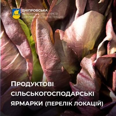 Із 14 до 19 квітня в Дніпровському районі відбудуться продуктові сільськогосподарські ярмарки.