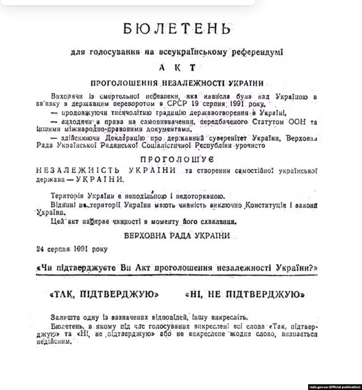 Фактично, українців висловилися 1 грудня 1991 року за скасування та руйнацію радянського союзу від імені усіх його громадян.