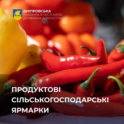 Цього тижня у Дніпровському районі пройдуть продуктові сільськогосподарські ярмарки. Зокрема, ярмарки відбудуться у:
