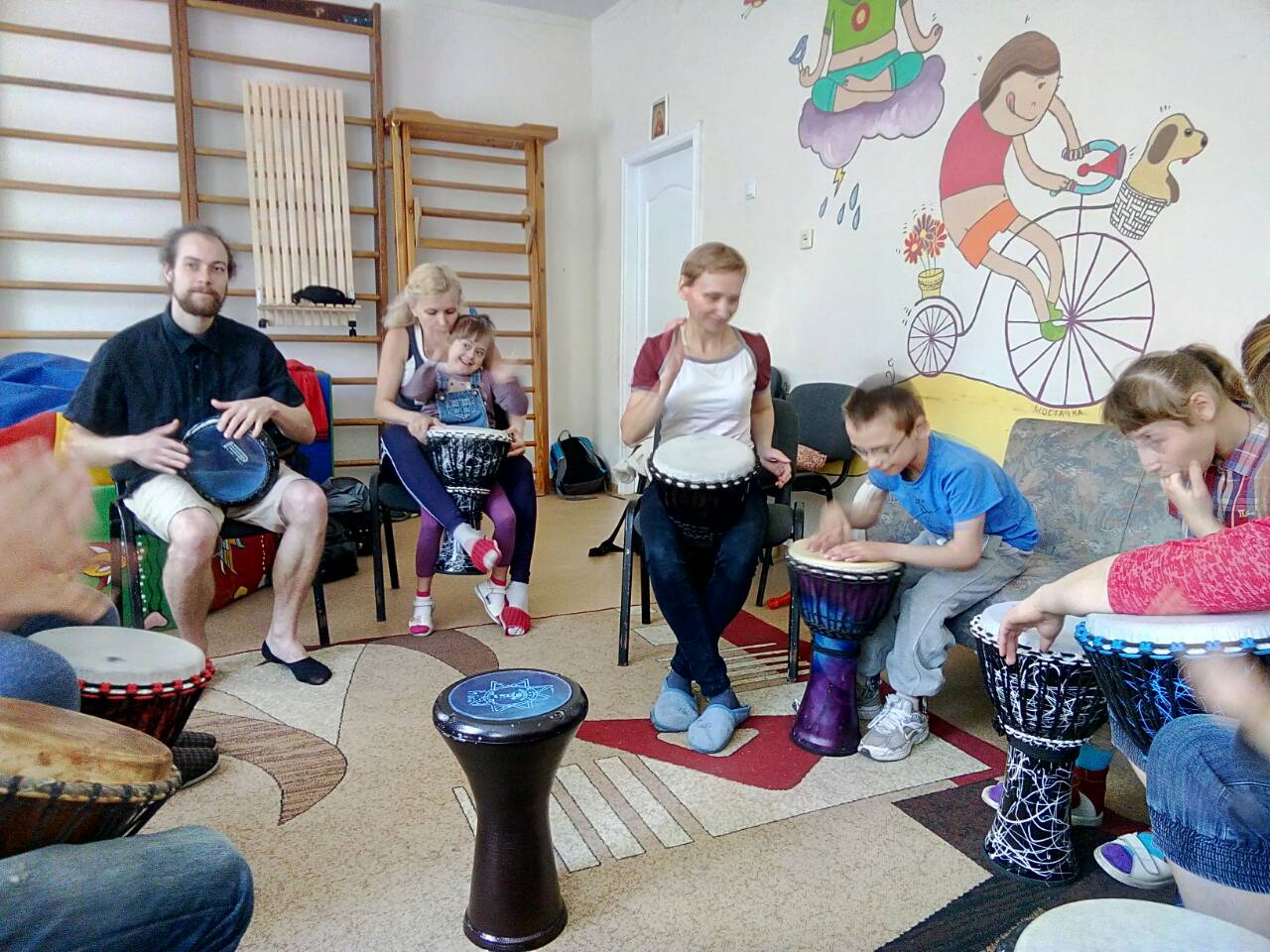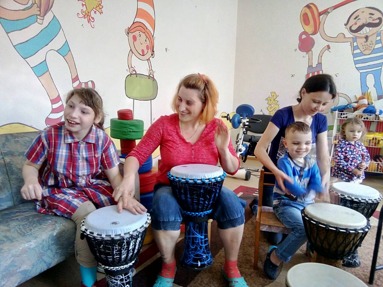 Вчора, 16 травня, відбулось заняття з «барабанотерапії» для дітей з батьками, що отримують послуги за соціальною програмою «Центр соціально-психологічної реабілітації дітей та молоді з інвалідністю» Дніпровського району (вул. Райдужна 51).
