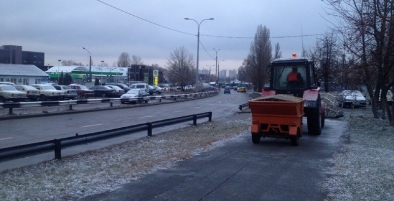 Зранку 30 грудня дорожники знову проводили обробку протиожеледними матеріалами спусків та підйомів, мостів, шляхопроводів, зупинок громадського транспорту, підходів до підземних пішохідних переходів та інших балансових територій.