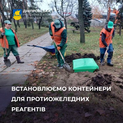 Щоб забезпечити комфортне та безпечне пересування відвідувачів парків, скверів і бульварів під час ожеледиці, продовжуємо встановлювати контейнери для протиожеледних реагентів.