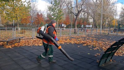 Фахівці КП УЗН вигрібають опале листя вздовж доріг та доріжок у парках, скверах і бульварах, а також на дитячих та спортивних майданчиках.