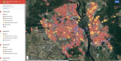 Інтерактивну карту з адресами укриттів для населення міста Києва оновлено й уточнено