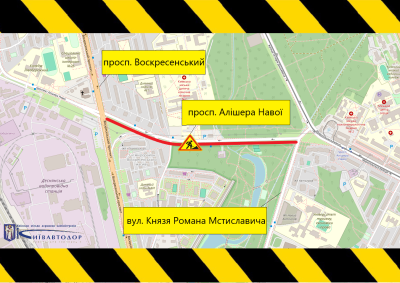 ❗️Із 1 до 15 жовтня частково обмежуватимуть рух проспектом Алішера Навої, на ділянці від Воскресенського проспекту до вулиці Князя Романа Мстиславича.