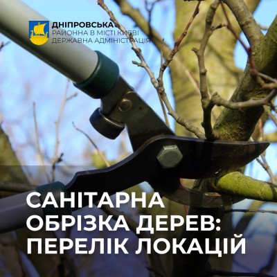 У КП УЗН інформують, що цього тижня підприємством заплановано проведення робіт з санітарної обрізки, видалення сухостійних та аварійних дерев за адресами: