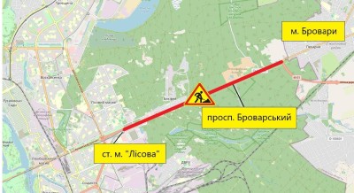 Дорожники виконуватимуть поточний ремонт асфальтобетонного покриття від ст. м. «Лісова» до м. Бровари. Роботи проводитимуть поетапно окремими ремонтними картами.