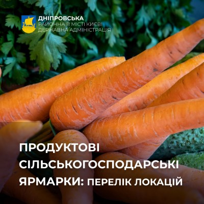 Цього тижня у Дніпровському районі столиці пройдуть продуктові сільськогосподарські ярмарки. Зокрема, ярмарки відбудуться: