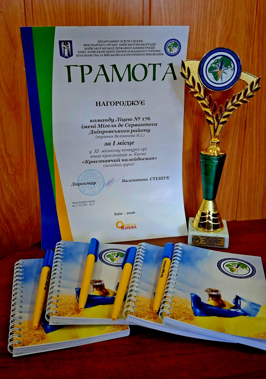 Учнівська команда Ліцею №176 ім. Мігеля де Сервантеса здобула І місце у ХІ міському конкурсі-грі юних краєзнавців Києва «Краєзнавчий калейдоскоп» (молодша вікова група).