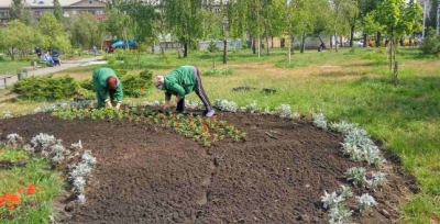 Працівники комунального підприємства по утриманню зелених насаджень продовжують прикрашати квітами території району. Квітники парків та скверів завдяки кропіткій праці озеленювачів постійно поповнюються новими рослинами, збагачуючись барвами. От і сьогодні у парку "Перемога", сквері на Дарницькій площі, на бульварі І. Миколайчука та транспортній розв'язці біля станції метро Лівобережна озеленювачі висадили квіти сальвії, сортові канни та чорнобривці.