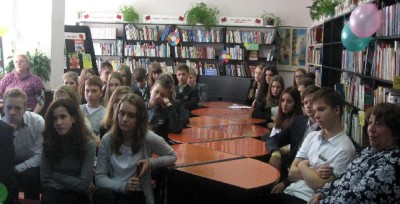 По завершенні літературної години старшокласники ознайомилися з книжковою виставкою «Українська класика». Словами вдячності та букетом жовтих хризантем учні подякували Олексію Дмитровичу за цікаву розповідь, а він, в свою чергу, пообіцяв їм посприяти в написанні науково - дослідницьких робіт МАН.