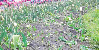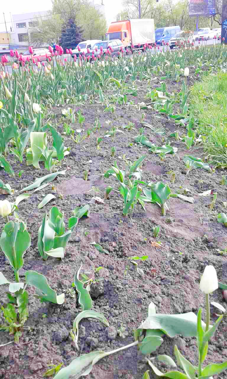На транспортній розв'язці біля метро Лівобережна вирізали тюльпани