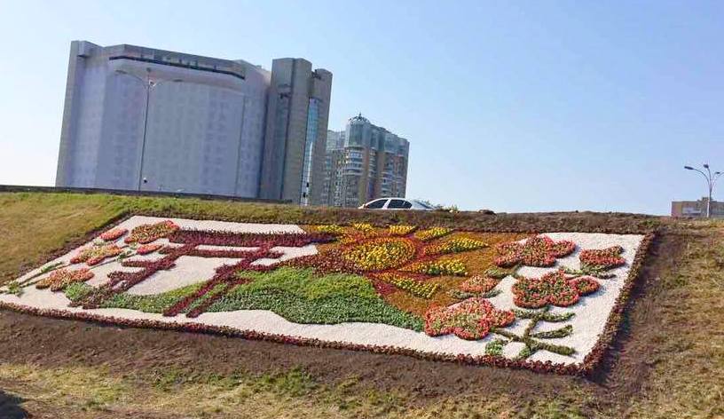 На транспортній розв'язці біля метро Лівобережна з’явилось квіткове панно, присвячене Року Японії в Україні