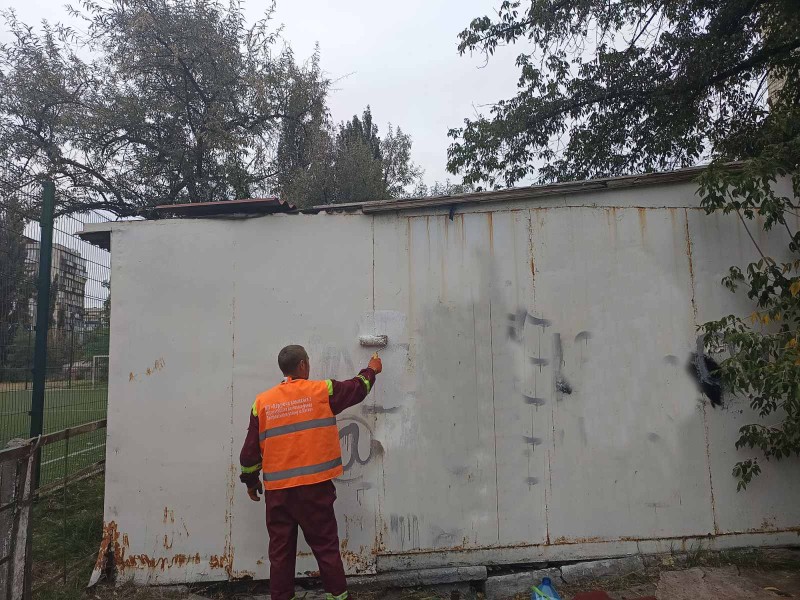Осінній місячник з благоустрою: КП Керуюча компанія зафарбовує графіті та написи на фасадах будівель