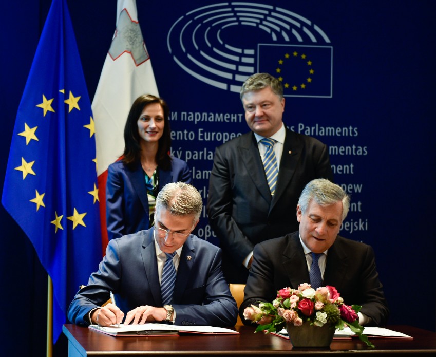 Законодавчий акт Європейського Союзу, яким запроваджується безвізовий режим для громадян України, підписаний Президентом Європейського Парламенту Антоніо Таяні та міністром внутрішніх справ і національної безпеки головуючої у Раді ЄС Мальти Кармело Абелою. В урочистій церемонії підписання рішення ЄС про запровадження безвізового режиму для громадян України взяв участь Президент України Петро Порошенко.