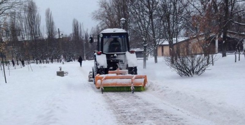 З самого ранку працівники КП УЗН Дніпровського району продовжують прибирати від снігу парки, сквери та бульвари для зручності киян та гостей міста.