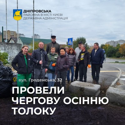 В межах осіннього місячника з благоустрою, прибрано територію по вулиці Гроденській, 32.