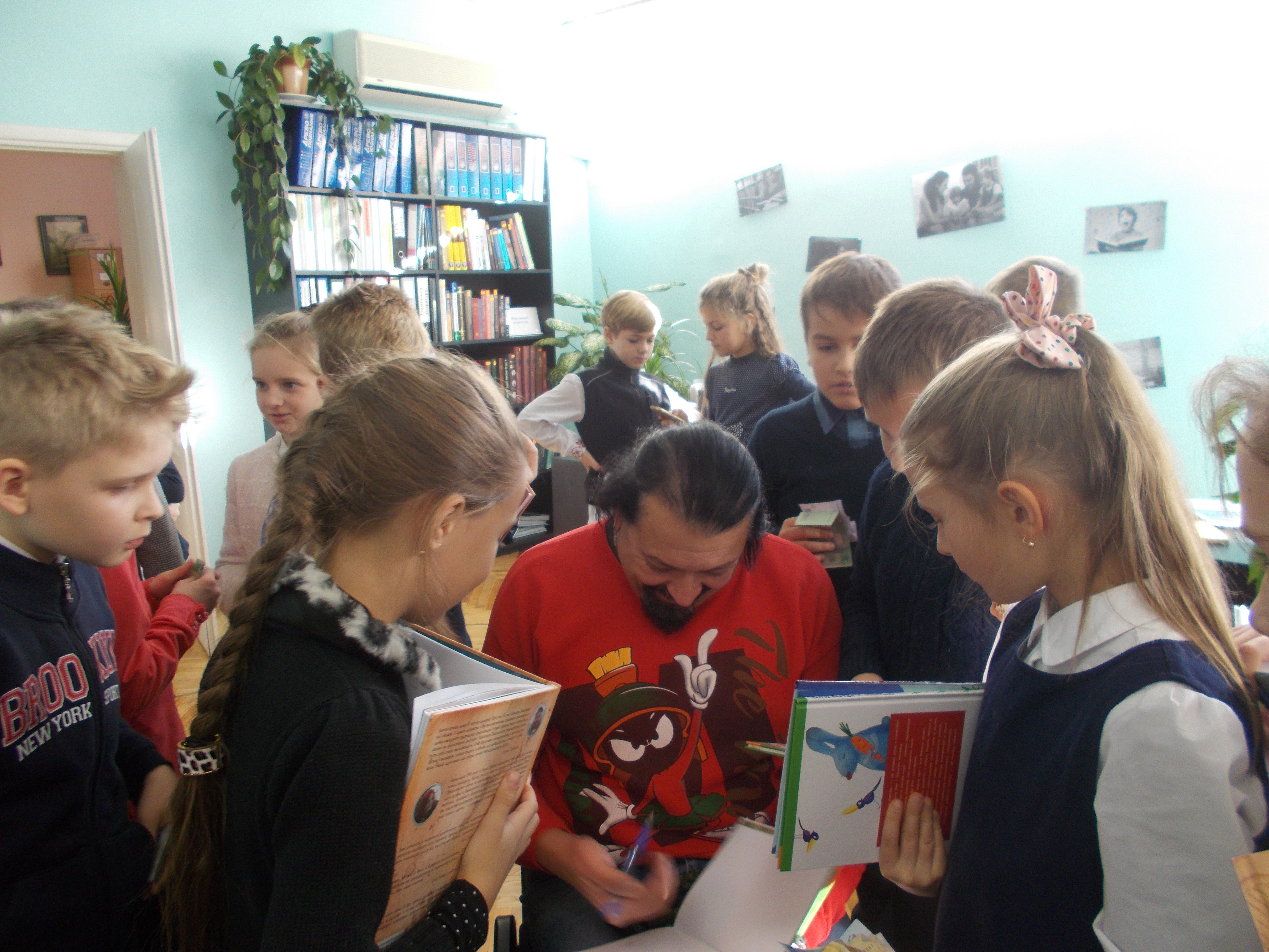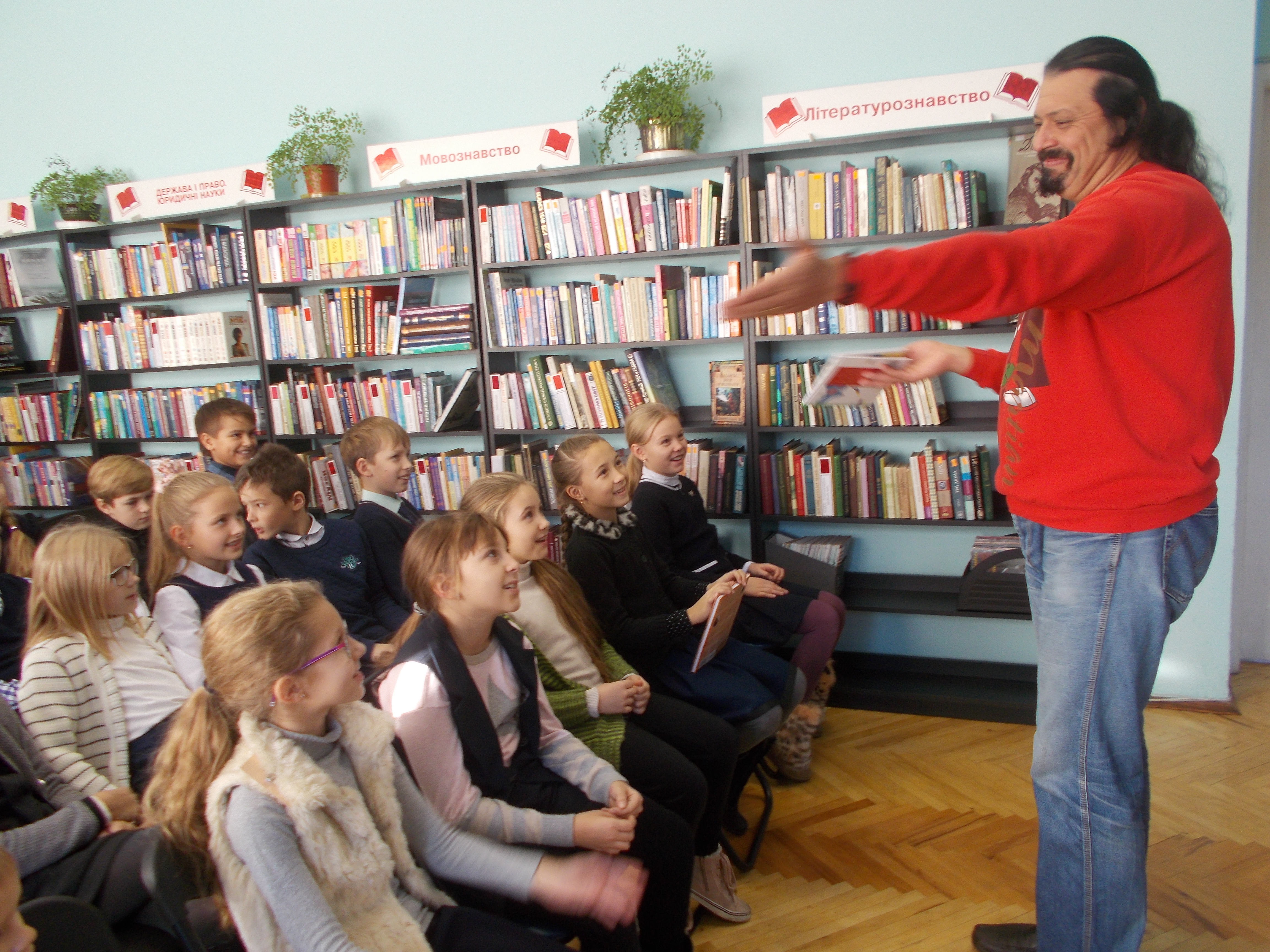 Сьогодні в районній бібліотеці ім. П. Усенка відбулась зустріч учнів четвертого «В» класу спеціалізованої школи № 327 з письменником Сергієм Пантюком. Для дітлахів, які подружилися з книжкою, це можливість зануритись в літературні мандри: спільно з улюбленим письменником школярики читали вірші, розгадували загадки та дискутували. Книжки Сергія Пантюка допомагають дітям пізнати навколишній світ та ознайомитись з новим і ще непізнаним, сприяють розвитку дитячої фантазії, ведуть їх в уявні подорожі.