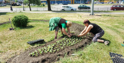 Районні зеленбудівці прополюють клумби та висаджують квіти