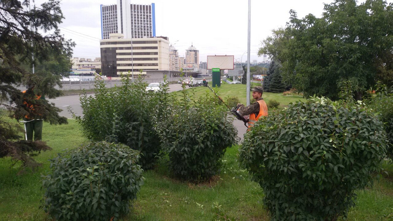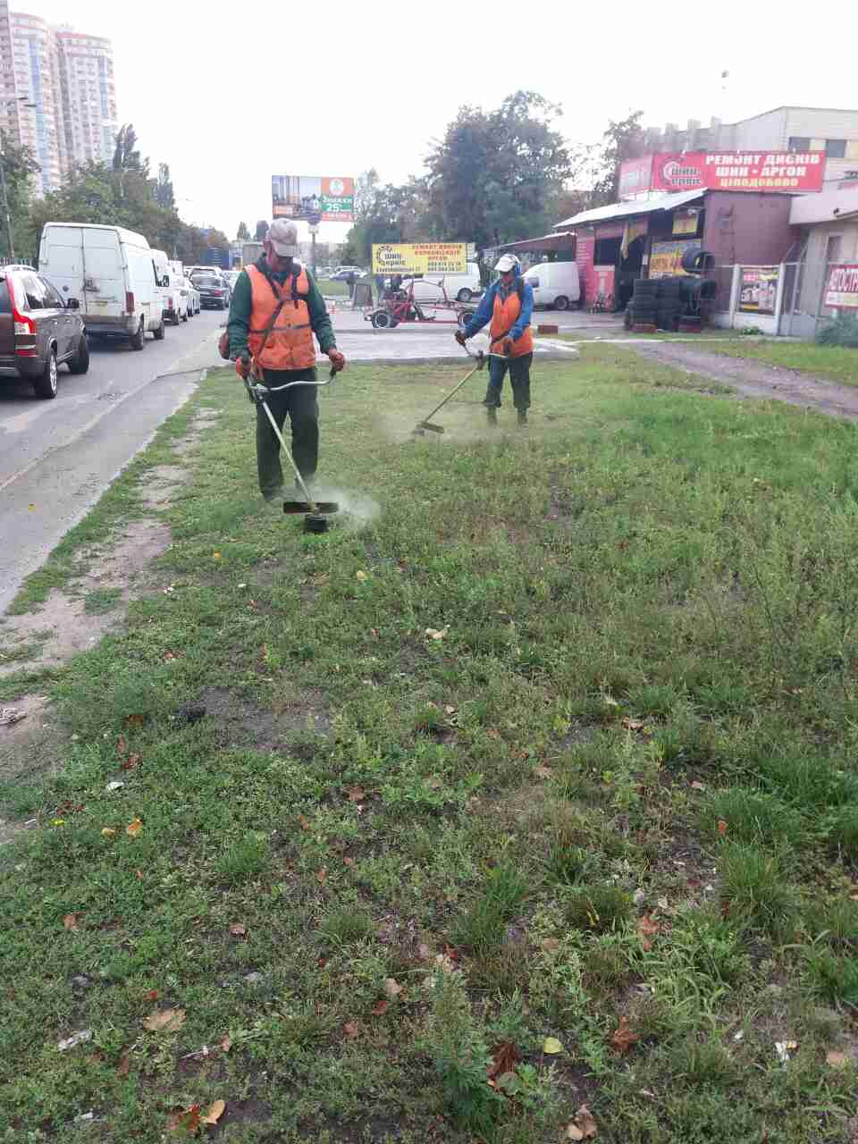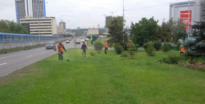 Також здійснили роботи з формувальної обрізки кущів на транспортній розв'язці біля станції метро «Лівобережна».