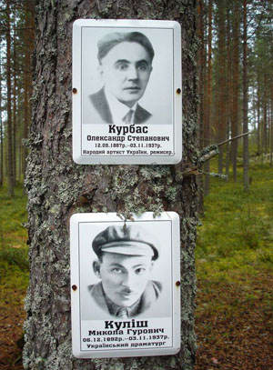 Урочище Сандармох стало одним із сумних символів Великого терору. 80 років тому там розстріляли близько 7 тисяч людей 60 національностей і дев’яти релігійних конфесій. Серед них понад 677 українців. У тому числі страчено впродовж 5 діб (27 жовтня і 1—4 листопада 1937 року) великий тюремний етап Соловків - 1111 в'язнів. Серед них були представники української культури, науки, освіти: режисер Лесь Курбас, драматург Микола Куліш, поети, професори Київського університету Микола Зеров і Павло Филипович, письменники Василь Атаманюк, Марко Вороний, Григорій Епік, Мирослав Ірчан, Михайло Козоріс, Валер’ян Підмогильний, Валерян Поліщук, Андрій Панів, Антін Крушельницький із двома синами, академіки Степан Рудницький і Матвій Яворський, науковці Василь Гоца, Сергій Грушевсткий (брат президента УНР Михаила Грушевского), Петро Демчук, Петро Дятлів, Василь Волков, Микола Трохименко та багато інших, хто потрапив до «Списку Сандармоху». Ці люди були одними з найяскравіших постатей тодішнього українського мистецтва, яке зараз називають "Розстріляне відродження".
