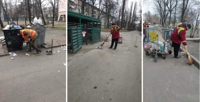 Працівники Комунального підприємства «Керуюча компанія з обслуговування житлового фонду Дніпровського району» продовжують виконувати свої обов'язки з належного утримання прибудинкових територій та допомагають КП «Київкомунсервіс» у вивезенні сміття від житлових будинків.