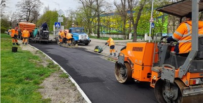 Фахівці КП ШЕУ продовжують роботи з улаштування кільцевої розв’язки на розі вулиць Едуарда Вільде та Ірини Бекешкіної. Також в рамках робіт здійснюють пониження бордюрів на пішохідних переходах з улаштування тактильної плитки. Окрім того ремонтують асфальтобетонне покриття тротуару.