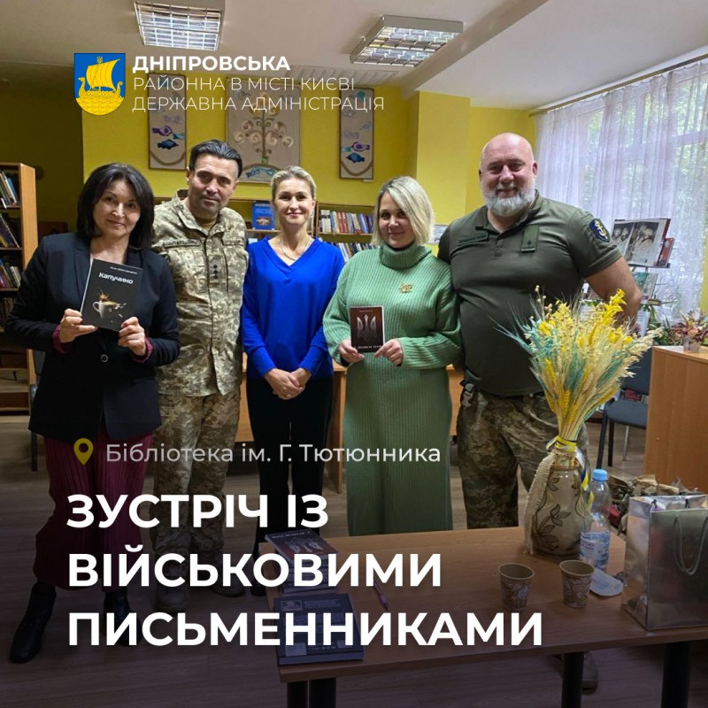 Бібліотека ім. Г. Тютюнника для дітей стала місцем особливої зустрічі — заклад мав честь приймати військових письменників, людей, чиє слово загартоване війною, а серце сповнене любов’ю до України.