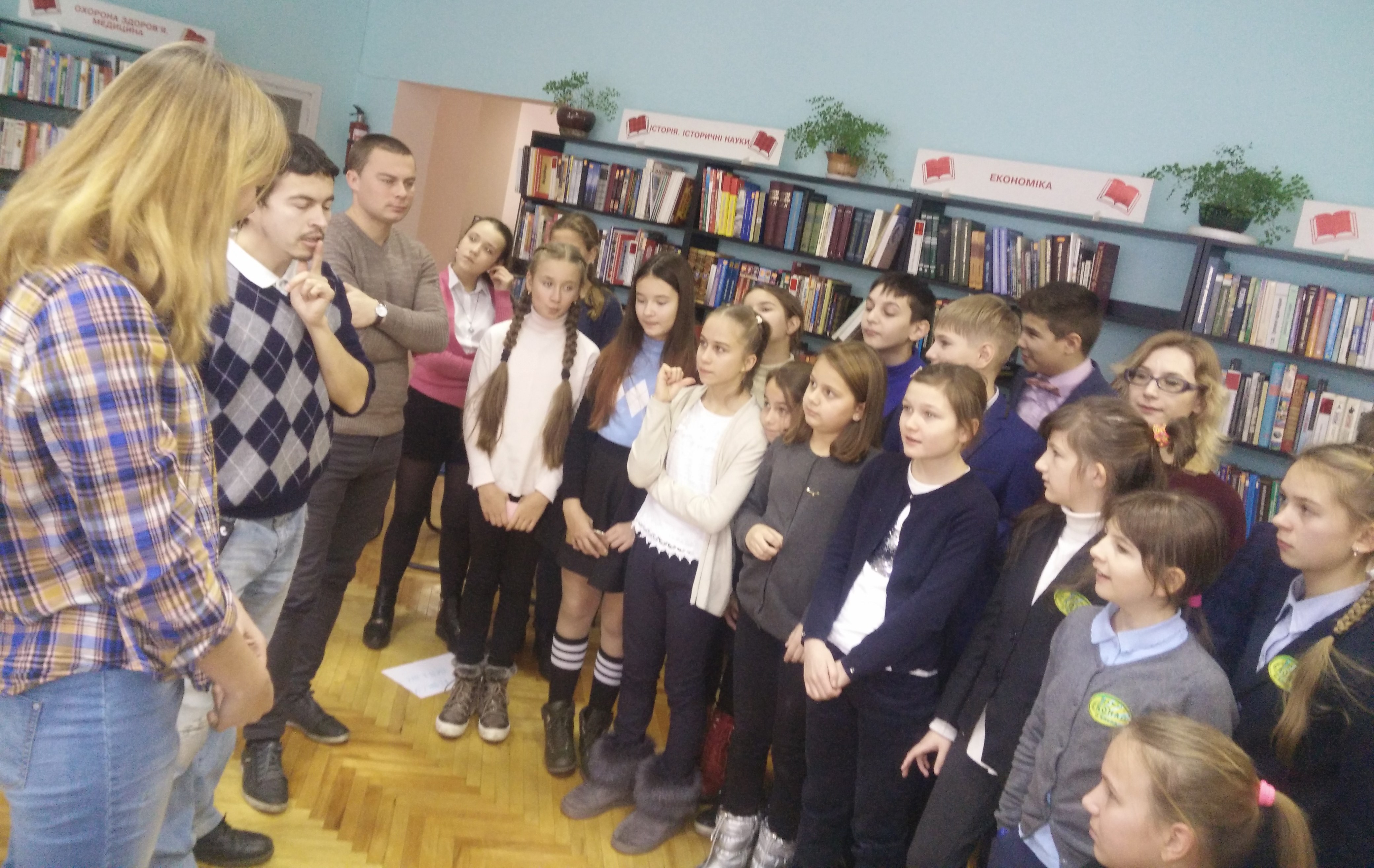 Сьогодні у бібліотеці ім. П. Усенка для дітей відбувся психологічний тренінг на тему поганих звичок. Захід організували волонтери Центру еволюції спільнот та Фундації соціальних інновацій «З країни в Україну» для учнів Навчально-виховного комплексу № 30 «Еконад». Відповіді на питання тренінгу були у вигляді веселої гри, майже квесту. Та незважаючи на «несерйозну» форму спілкування підлітки вели жвавий діалог на дуже серйозні теми: