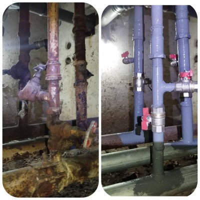 Спеціалісти районного КП Керуюча компанія продовжують роботи з відновлення інженерних мереж у житлових будинках. Зокрема, замінюють запірну арматуру та аварійні ділянки трубопроводів.