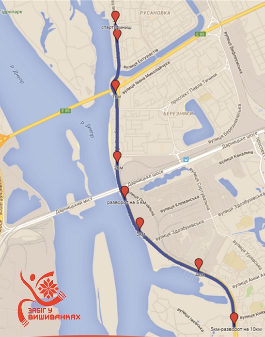 Легкоатлетичний пробіг «Забіг у вишиванках» відбудеться на 5 км та 10 км. Траса – 100% асфальт.