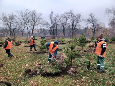 Зокрема, учора висадили 30 дерев сосни звичайної у парку вздовж вул. Гетьмана Павла Полуботка.