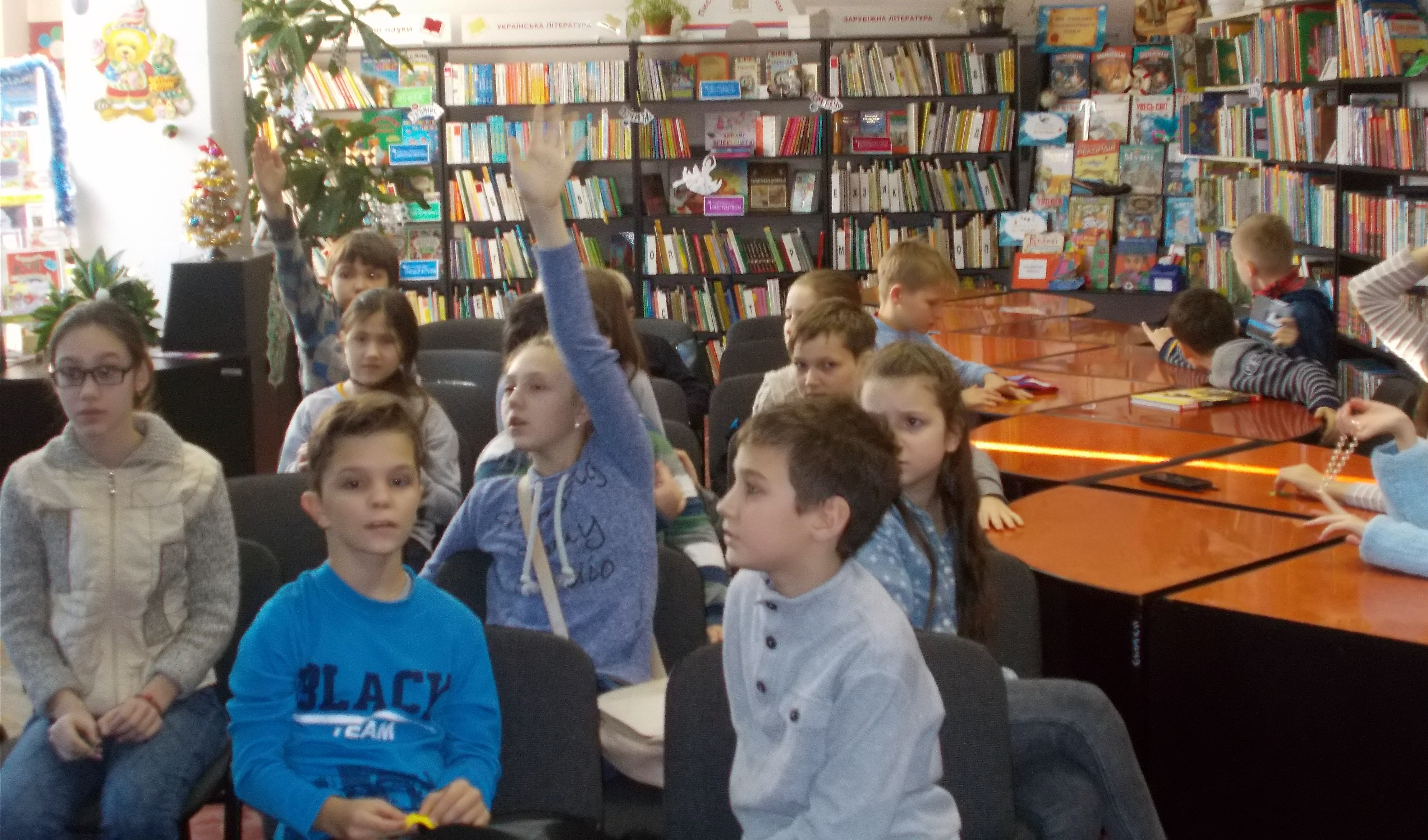 27 грудня до Районної бібліотеки ім. П. Усенка для дітей завітали учні 5-Б класу Навчально-виховного комплексу № 141 «ОРТ» разом із свою вчителькою Березюк Оксаною Михайлівною. На них чекала підготовлена працівниками книгозбірні географічна фільмотека «Природні чудеса України», присвячена унікальним місцям нашої країни, які створила природа із води, піску, гір, дерев, кам’яних брил. Це справжні чудеса, які вражають масштабами і неповторною красою, оповиті таємницями, змальовані в легендах.