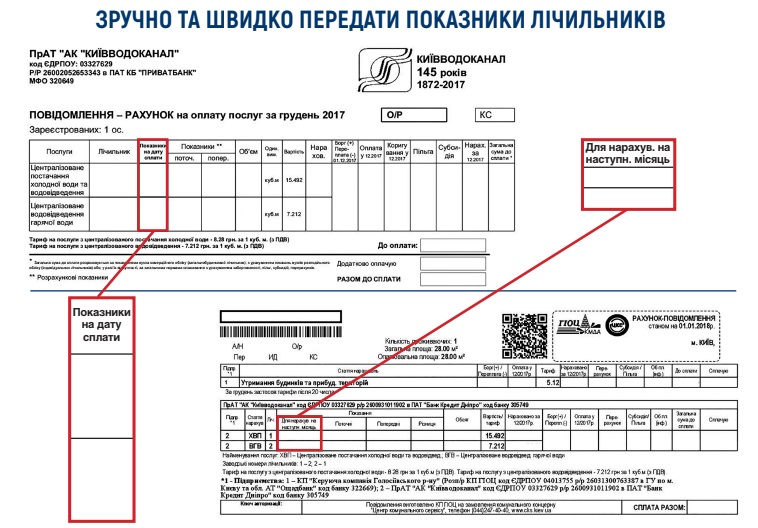 - Записати показники у відповідній графі платіжного повідомлення при оплаті у банківських установах.