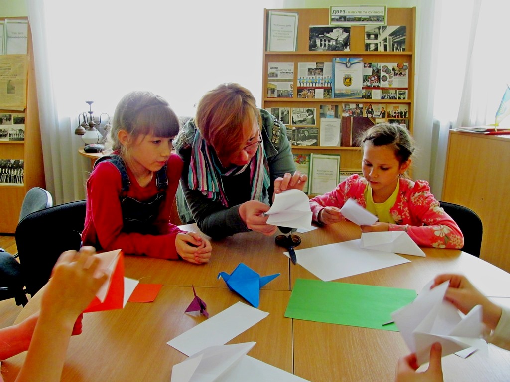 Юні творці клубу аматорів декоративного мистецтва «Палітра» Центру культури і мистецтв Дніпровського району завітали до бібліотеки № 158 (вул. Алма-Атинська, 109) на тематичний захід присвячений Року Японії в Україні. Дівчатка слухали цікавинки про загадкову острівну країну Сонця, а потім з азартом взялися за створення паперових птахів-журавликів за технікою «орігамі». Це древнє мистецтво бере свій початок з 8-го століття саме у Японії. Тоді папір був дуже дорогим, тому складання фігурок було доступне лише заможним японцям. Після майстер-класу юні художниці ознайомилися із літературною виставкою «Яка вона - Японії душа?», позували для фото із своїми паперовими витворами та записувались до бібліотеки.