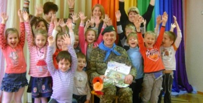 Впродовж 6 місяців він ніс нелегку службу у лавах Львівського прикордонного загону «Патріот» у Волновасі. Затамувавши подих, вихованці старших груп та учні початкової школи дослухалися до небагатослівного воїна-сапера про воєнні будні та міцну військову дружбу. А потім були запитання і відповіді.