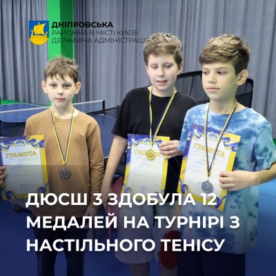 Вихованці ДЮСШ 3 здобули 12 медалей на відкритій першості с.к. «Лідер» з настільного тенісу